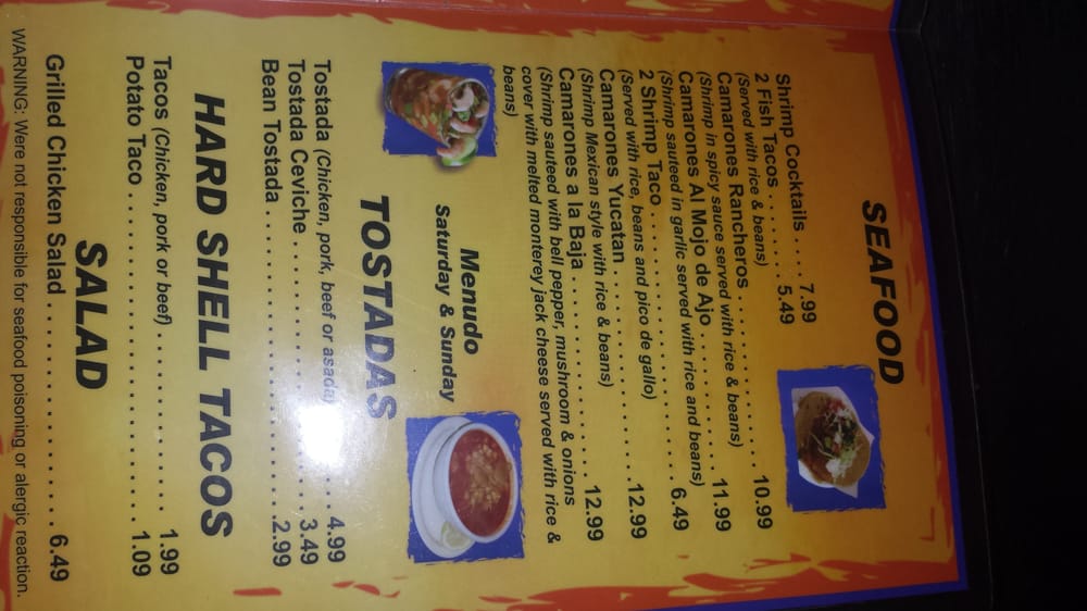 Baja Mar Fish Taco Menu